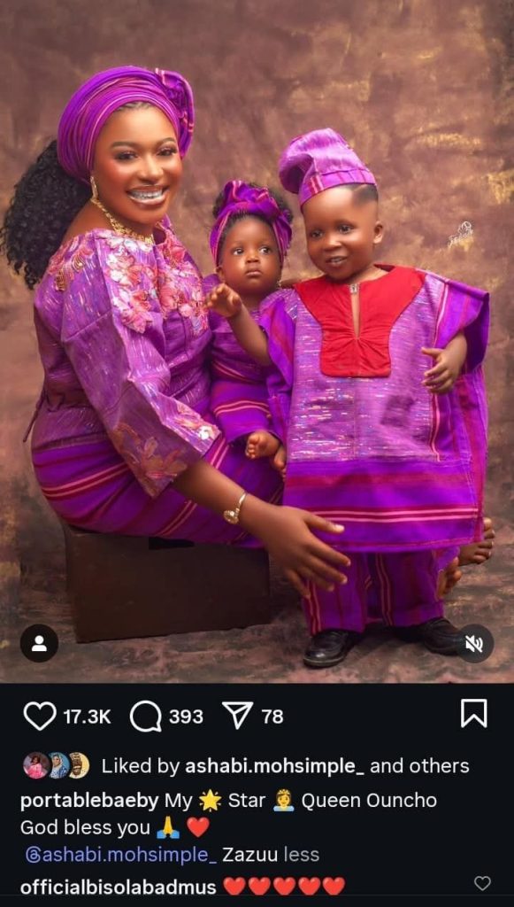 Sharing a family photo of Ashabi and their two kids, Portable showered her with praises, calling her his “Star Queen” while praying for God’s blessings upon her.